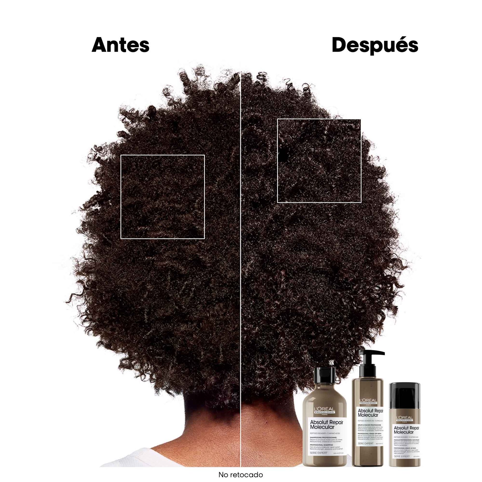 - Después de usar tu Shampoo Reparador Molecular, aplica de manera uniforme en el cabello desde largos a puntas.